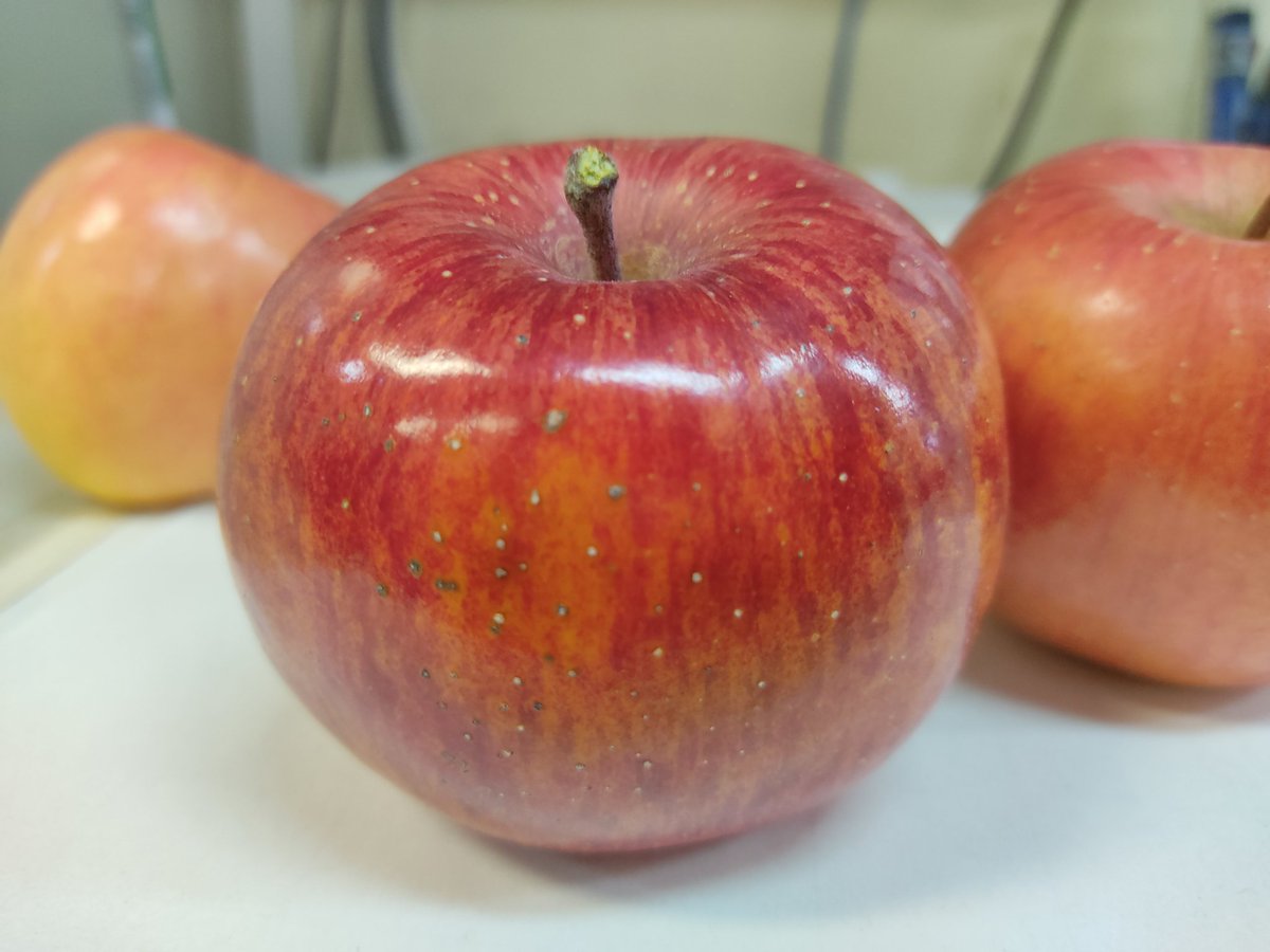 ハヤ3ケン 見慣れない小さいりんごが売ってたので買ってみた アルプス乙女 りんご 飴とかに使うやつ ちょっとやわらかいけど甘くて 糖度14 5 美味しかったです 並べてるりんごは一般的な大きさのふじ
